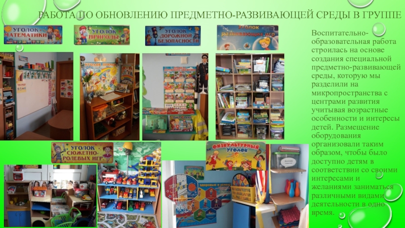 Слайд 11 Работа по обновлению предметно-развивающей среды в группе
