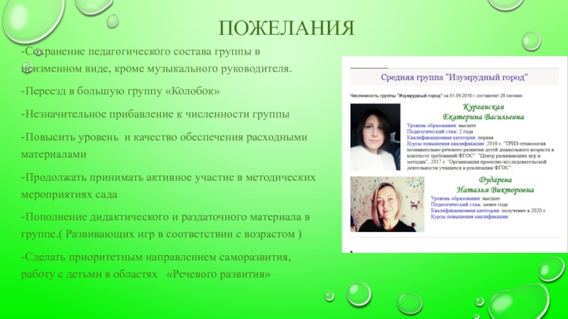 -Сохранение педагогического состава группы в неизменном виде, кроме музыкального
