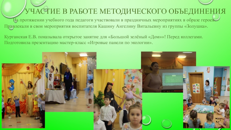 Курганская Е.В. показывала открытое занятие для «Большой зелёный «Дом»»! Перед коллегами. Подготовила презентацию мастер-класс «Игровые панели по экологии».