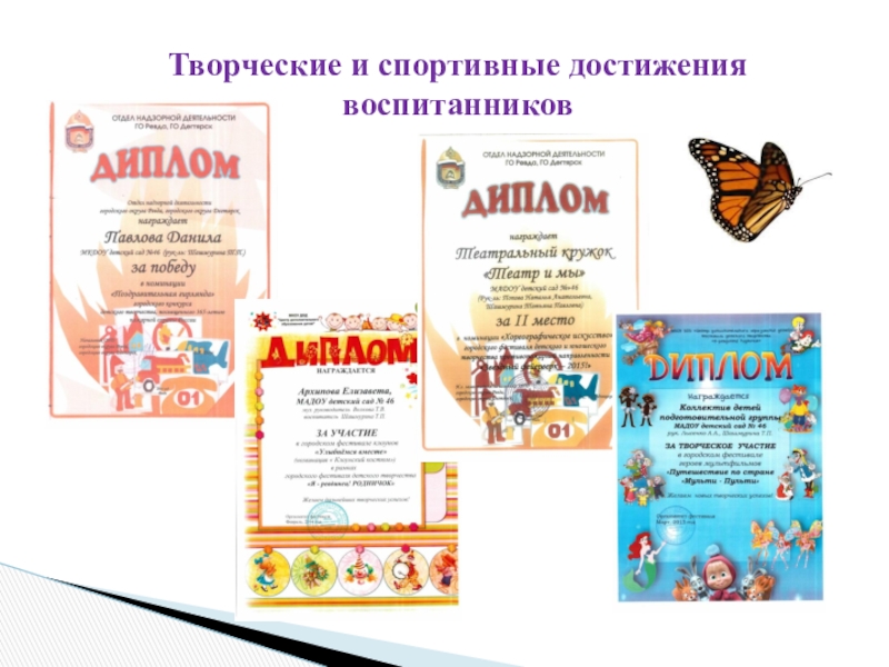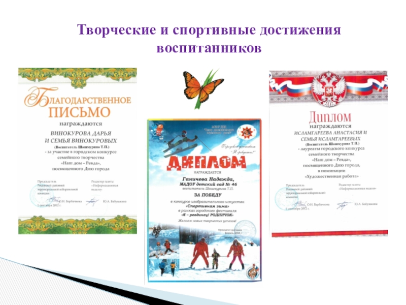 Слайд 31Творческие и спортивные достижения воспитанников