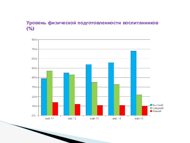 Слайд 17Уровень физической подготовленности воспитанников (%)