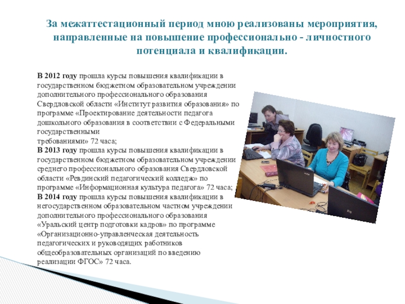 Слайд 12За межаттестационный период мною реализованы мероприятия, направленные на повышение профессионально -