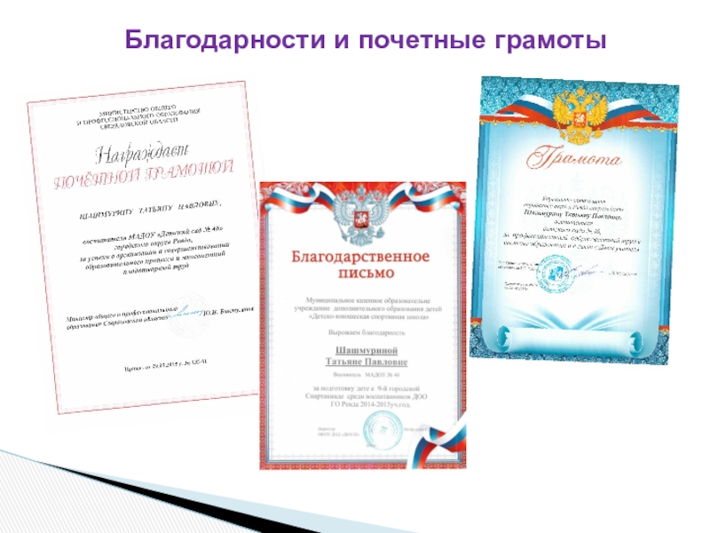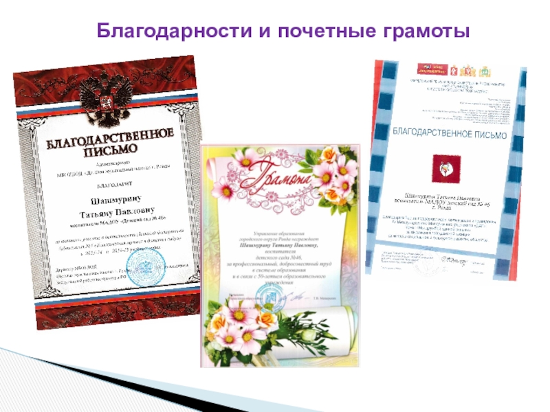 Слайд 13Благодарности и почетные грамоты