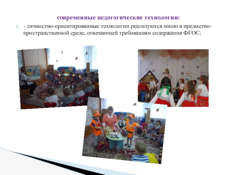 - личностно-ориентированные технологии реализуются мною в предметно-пространственной среде, отвечающей