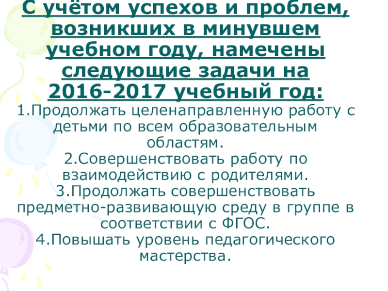 Слайд 28С учётом успехов и проблем, возникших в минувшем учебном году, намечены