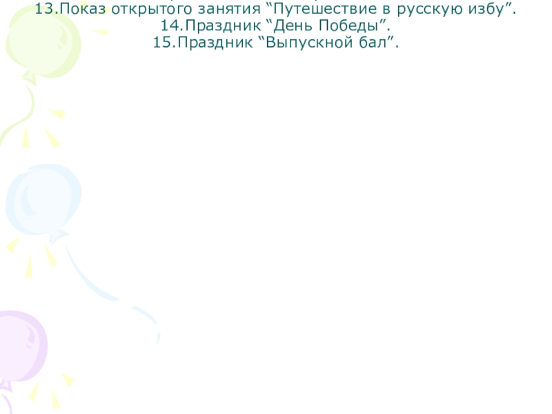 13.Показ открытого занятия “Путешествие в русскую избу”.