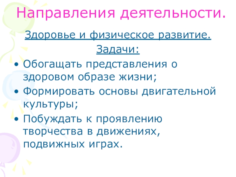 Побуждать к проявлению творчества в движениях, подвижных играх.