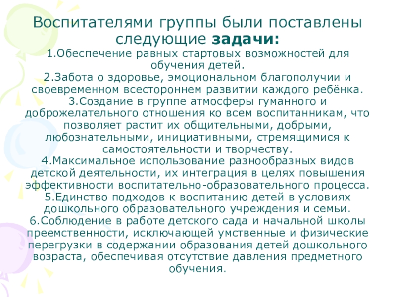 Слайд 3Воспитателями группы были поставлены следующие задачи: