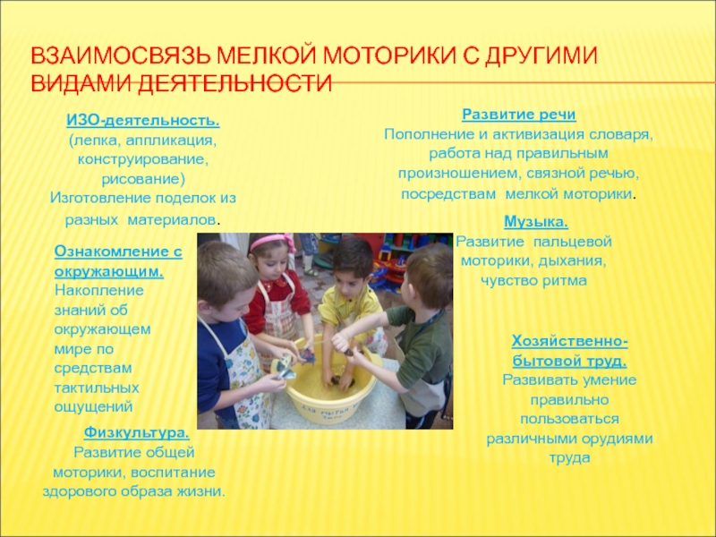 Слайд 26ВЗАИМОСВЯЗЬ МЕЛКОЙ МОТОРИКИ С ДРУГИМИ ВИДАМИ ДЕЯТЕЛЬНОСТИ