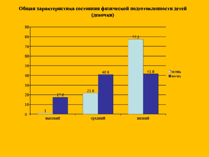 Слайд 24Общая характеристика состояния физической подготовленности детей (девочки)