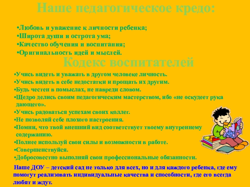 ● уважительное отношение к каждому ребенку, к его чувствам и потребностям;