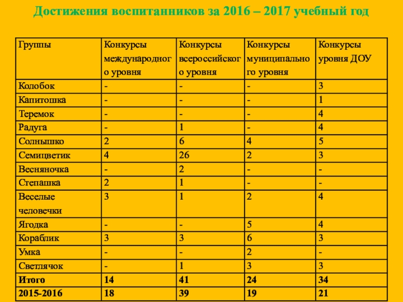 Слайд 30Достижения воспитанников за 2016 – 2017 учебный год