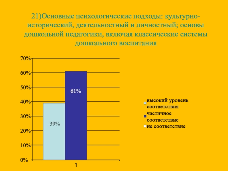 Слайд 6721)Основные психологические подходы: культурно-исторический, деятельностный и личностный; основы дошкольной педагогики, включая