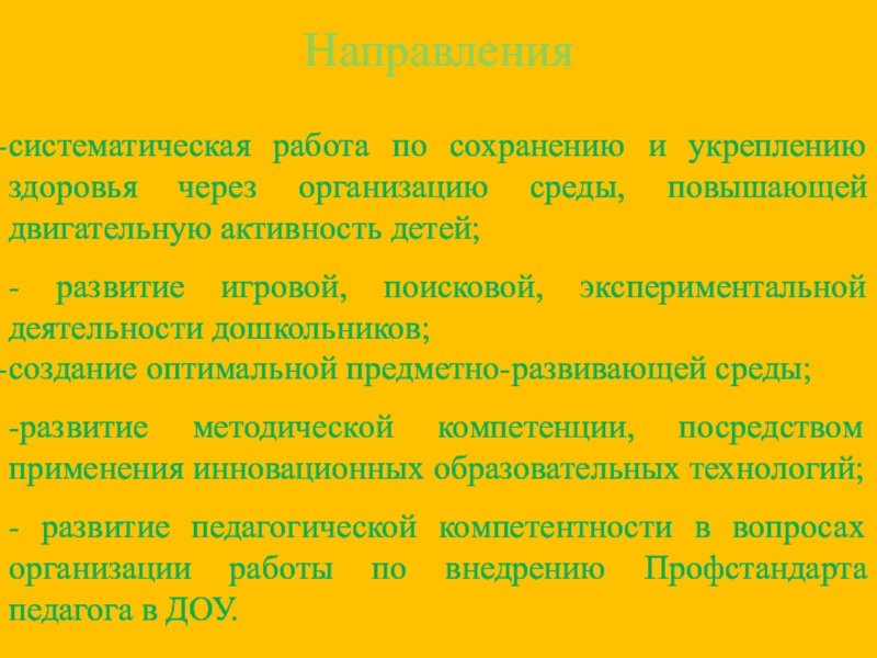 - развитие педагогической компетентности в вопросах организации работы по внедрению Профстандарта педагога в ДОУ.