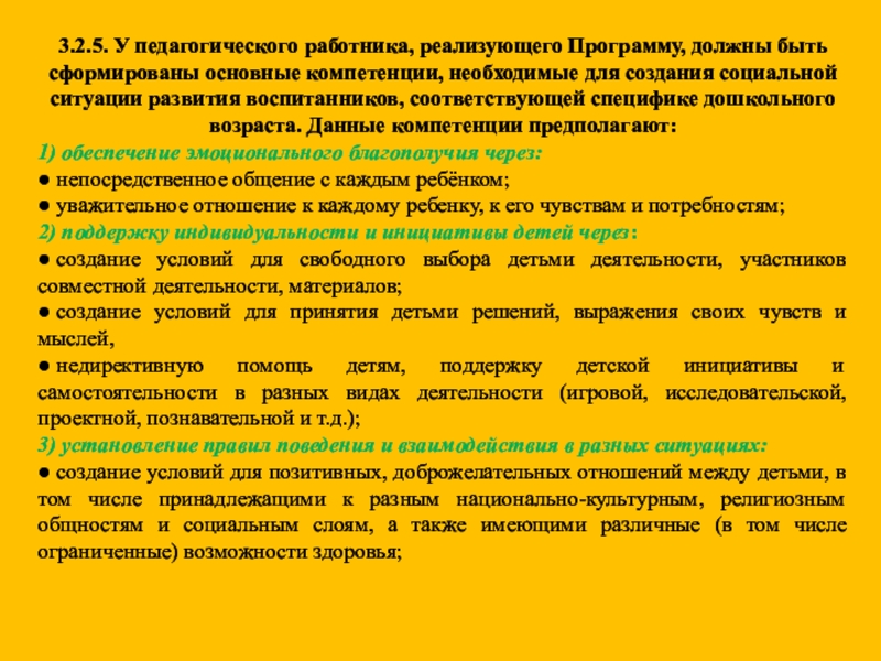 Слайд 353.2.5. У педагогического работника, реализующего Программу, должны быть сформированы основные компетенции,