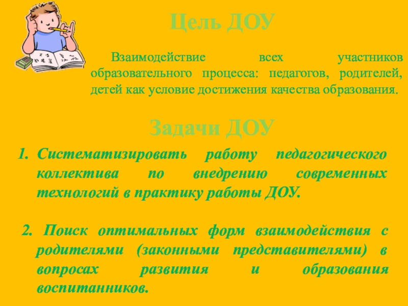 2. Поиск оптимальных форм взаимодействия с родителями (законными представителями) в вопросах развития и образования воспитанников.