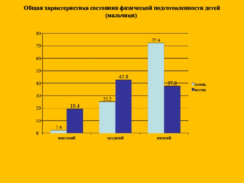 Слайд 23Общая характеристика состояния физической подготовленности детей (мальчики)