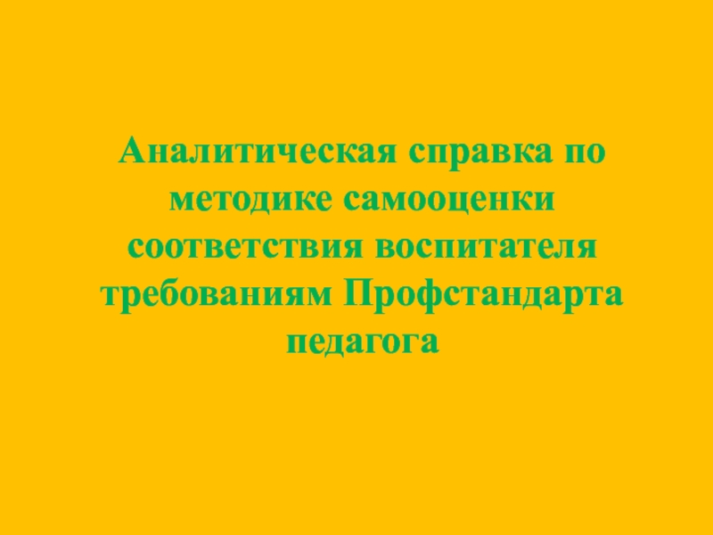 Слайд 46Аналитическая справка по методике самооценки соответствия воспитателя требованиям Профстандарта педагога