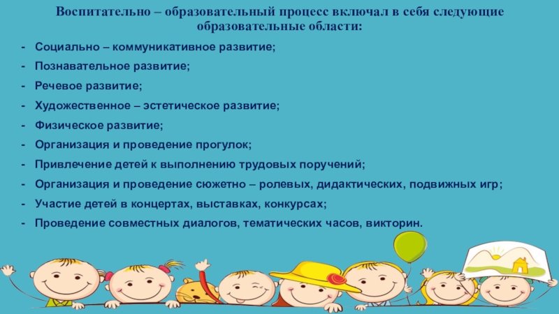 Слайд 4Воспитательно – образовательный процесс включал в себя следующие образовательные области: