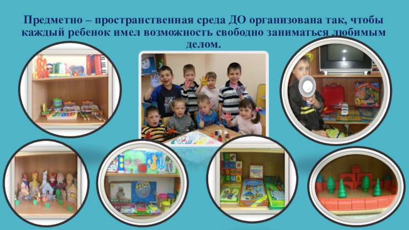 Слайд 7Предметно – пространственная среда ДО организована так, чтобы каждый ребенок имел