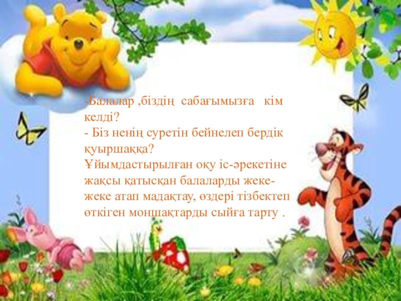 - Қуыршақ Айсұлу ренжіп келеді. Айсұлу моншақтарын бізге келе жатқанда үзіп алыпты, сендер сол әдемі моншақтарын тізіп беруге көмектесе ме екен,- деп үміттеніп келіпті.