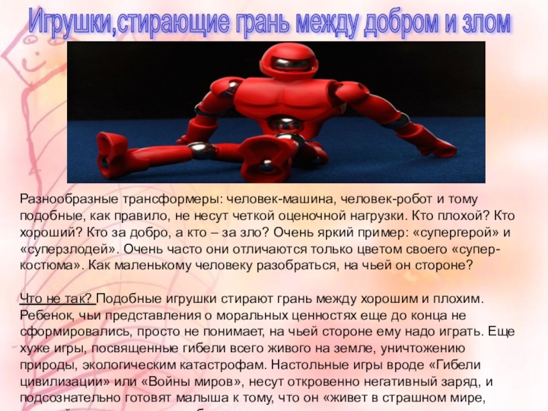 сочетание излишне возбуждает детей. Подобная игрушка формирует у ребенка неверное представление о мире.