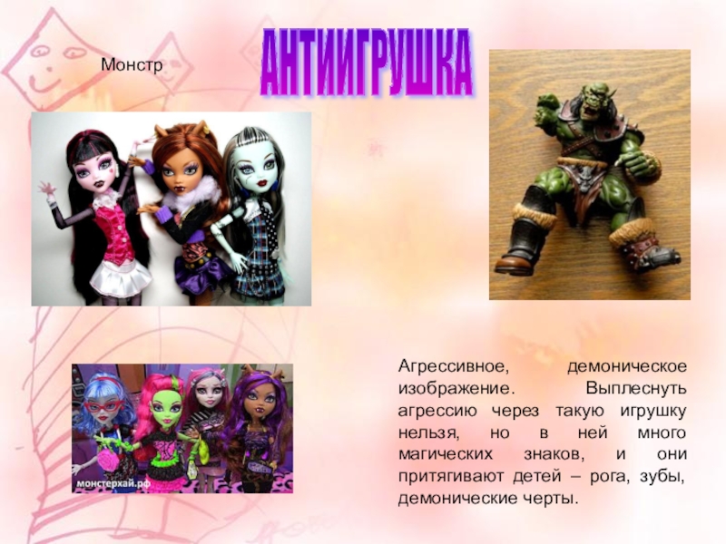 Агрессивное, демоническое изображение. Выплеснуть агрессию через такую игрушку нельзя,