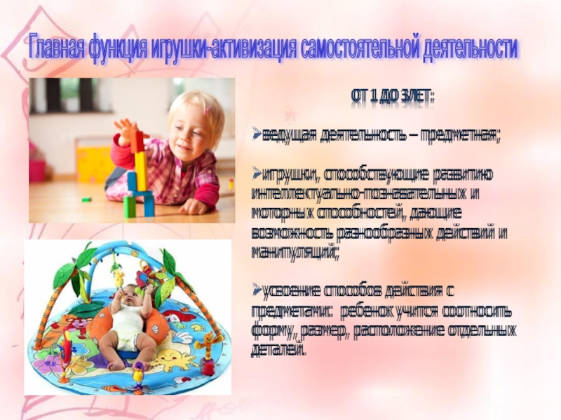 Главная функция игрушки-активизация самостоятельной деятельности