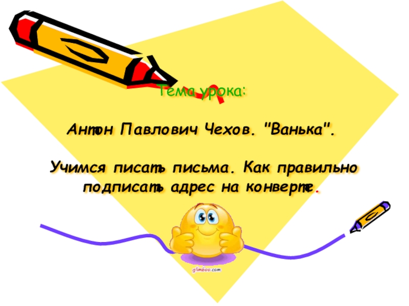 Тема урока: Антон Павлович Чехов. "Ванька". Учимся писать письма. Как правильно подписать адрес на конверте.