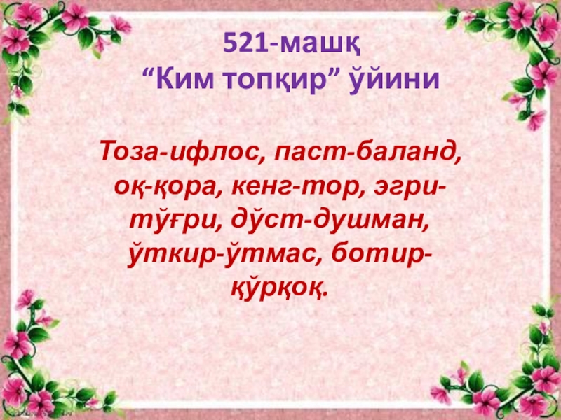 Это сайт презентаций, где можно хранить и обмениваться своими презентациями, докладами, проектами, шаблонами в формате PowerPoint с другими пользователями. Мы помогаем школьникам, студентам, учителям, преподавателям хранить и обмениваться учебными материалами.