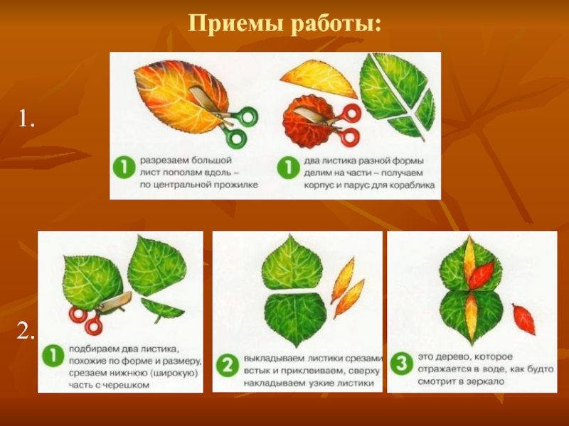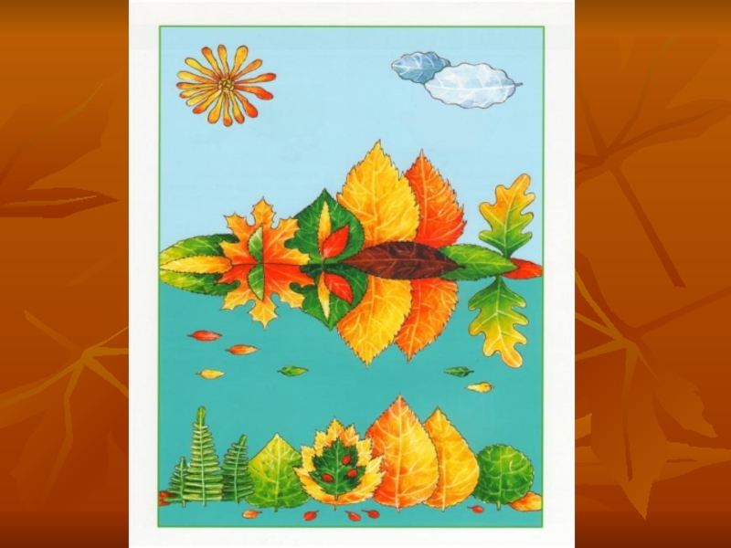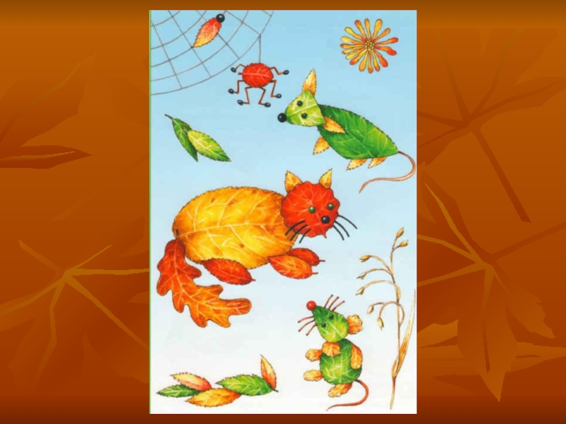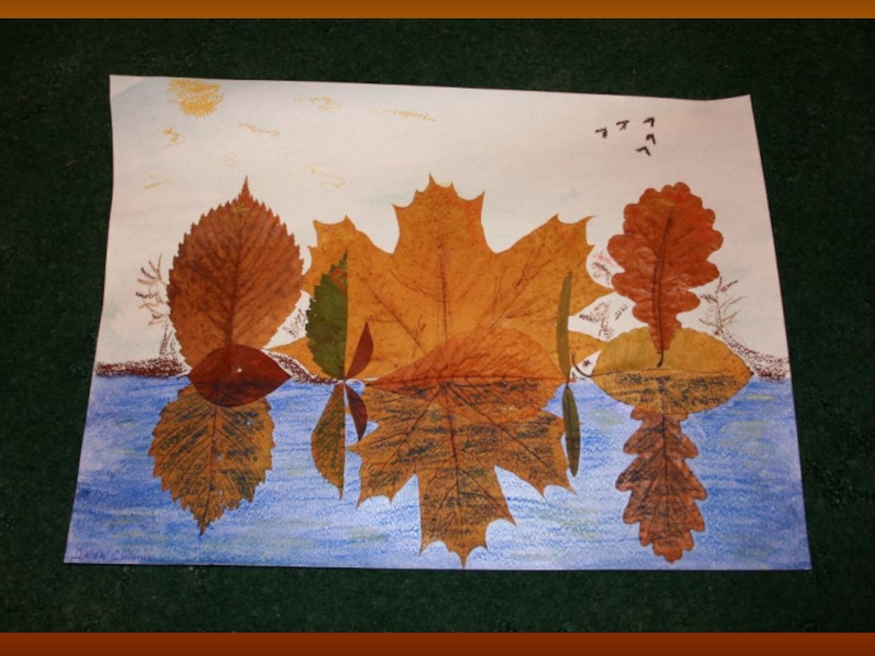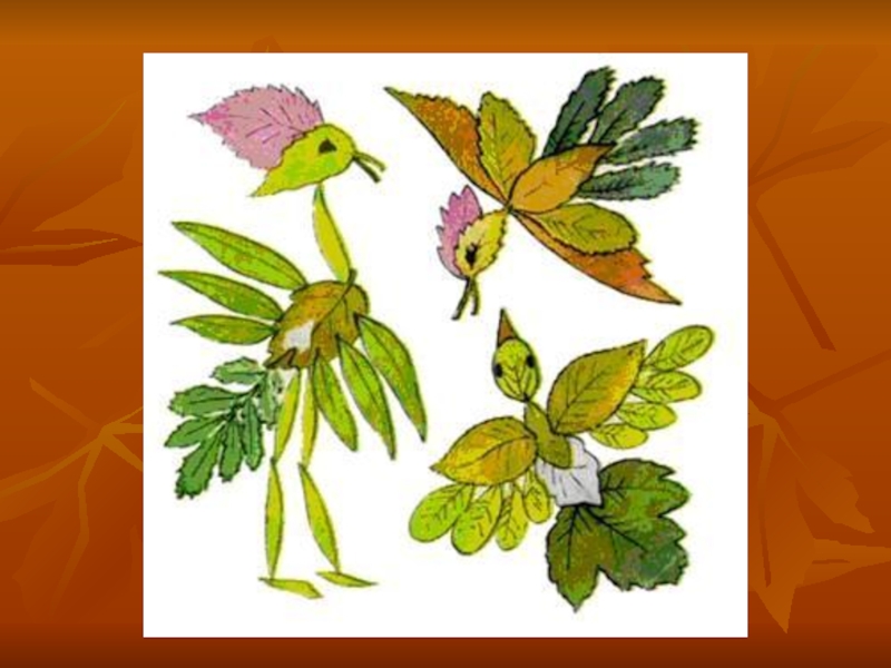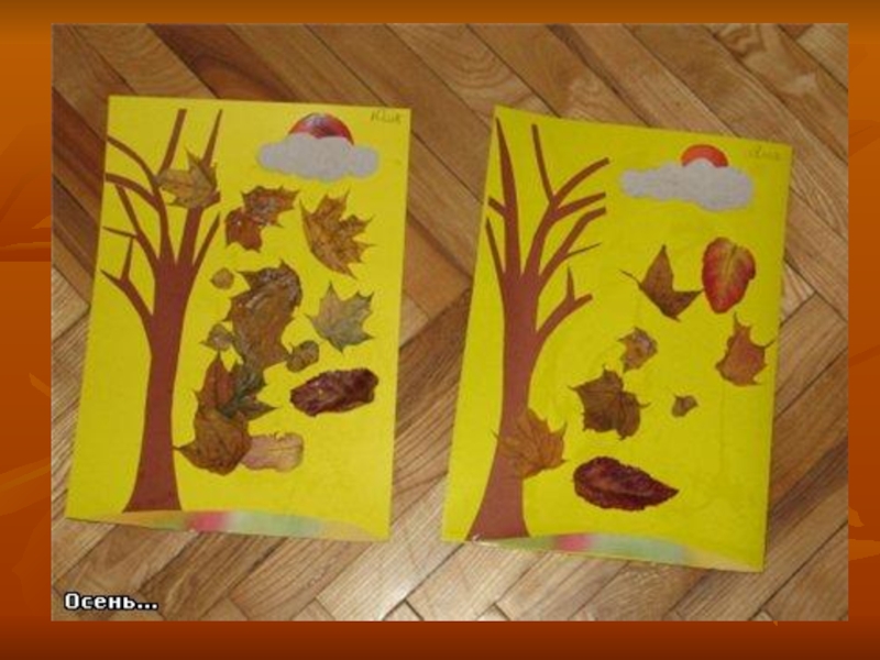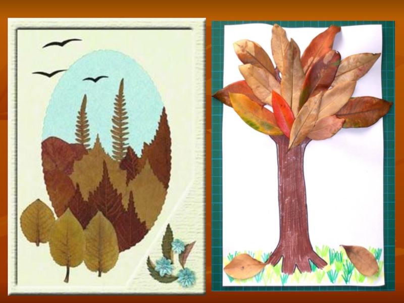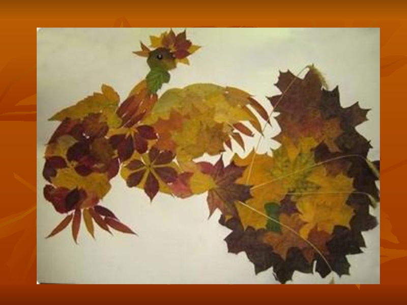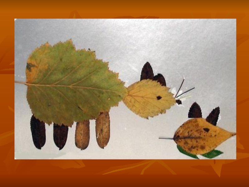 Слайд 1Аппликации из осенних листьев