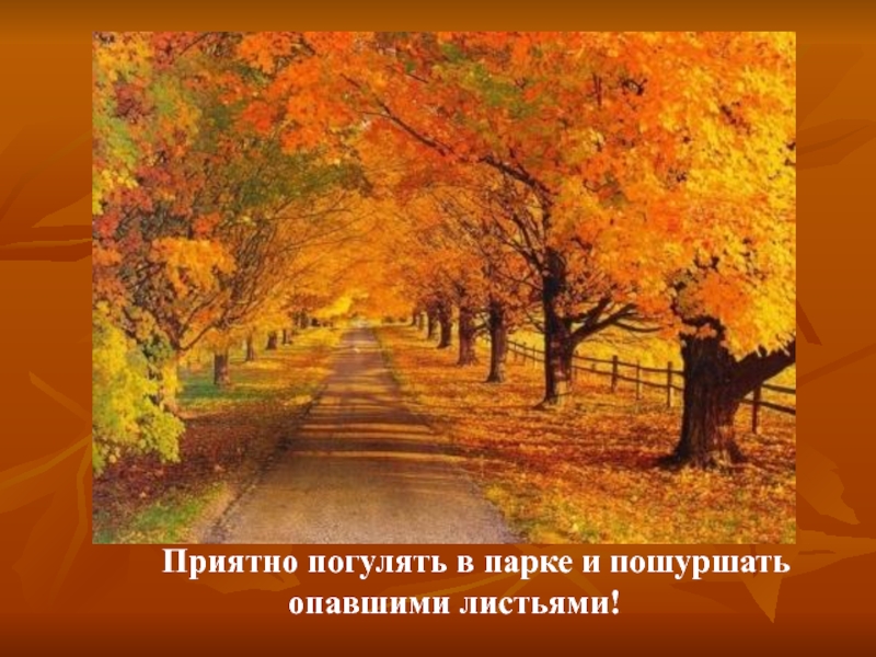 Слайд 3 Приятно погулять в парке и пошуршать