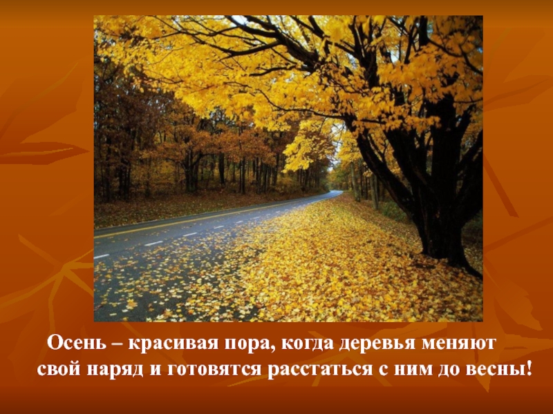 Слайд 2 Осень – красивая пора, когда деревья меняют свой