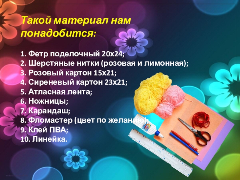 8. Фломастер (цвет по желанию);