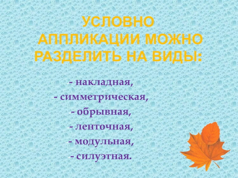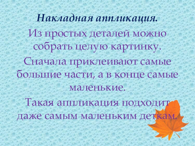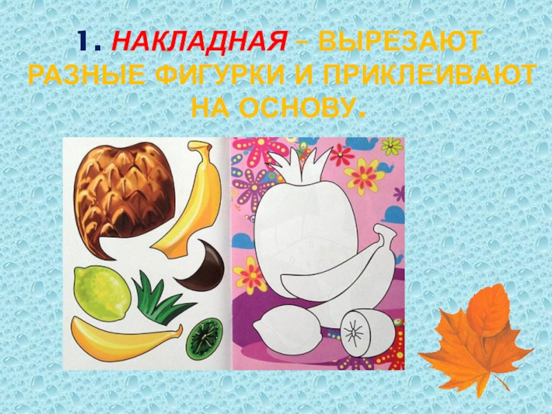 Слайд 71. Накладная – вырезают разные фигурки и приклеивают на основу.
