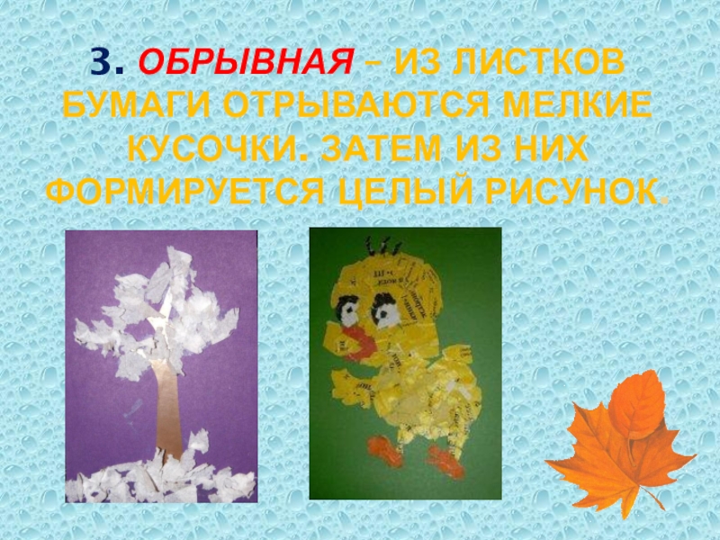 Слайд 113. Обрывная – из листков бумаги отрываются мелкие кусочки. Затем из них формируется