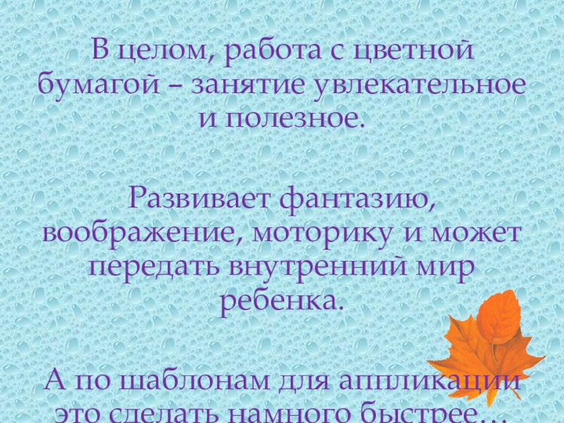 В целом, работа с цветной бумагой – занятие увлекательное и полезное.