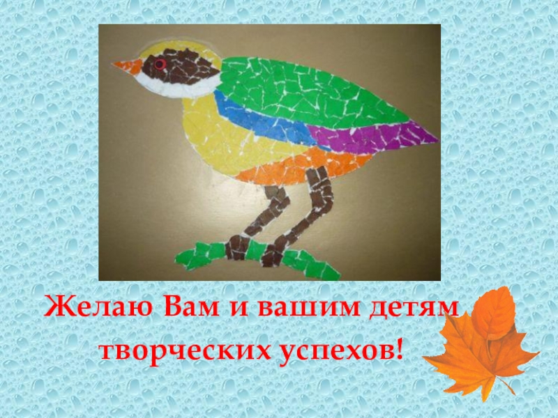 наклеивания фигурок, узоров или целых картин из кусочков бумаги, ткани, кожи, растительных и прочих материалов на материал-основу (фон).