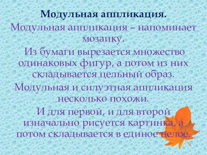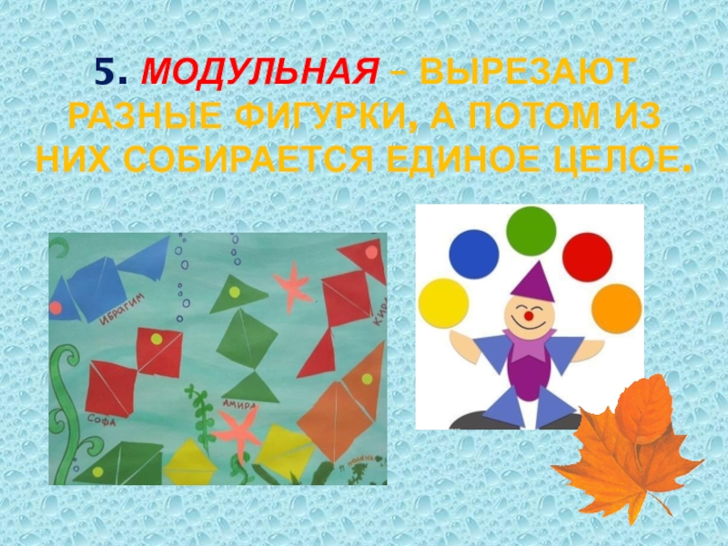Слайд 155. Модульная – вырезают разные фигурки, а потом из них собирается единое целое.