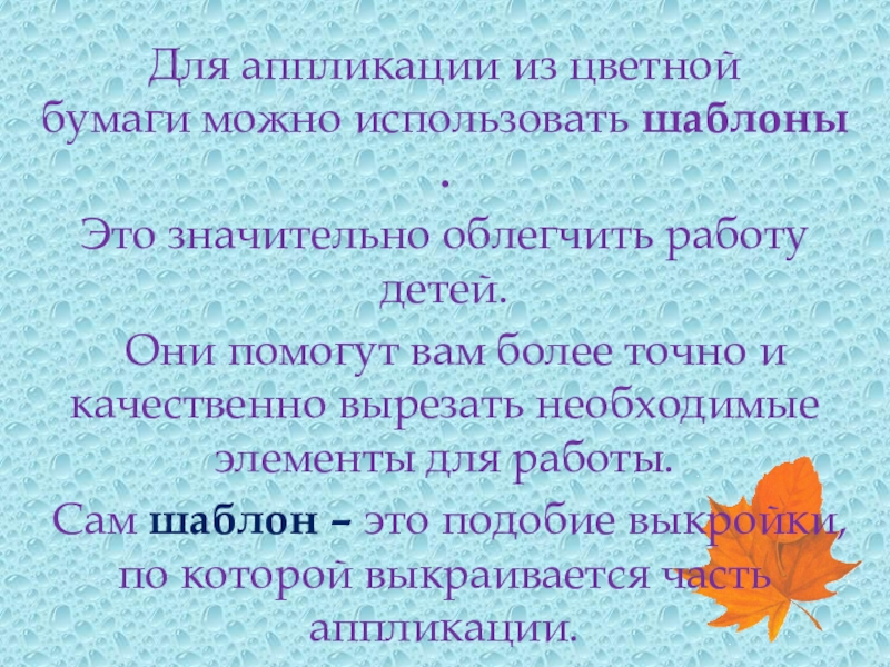 Слайд 5Для аппликации из цветной бумаги можно использовать шаблоны .