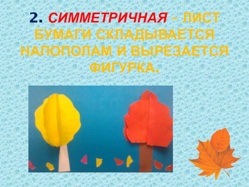 Слайд 92. Симметричная – лист бумаги складывается напополам и вырезается фигурка.