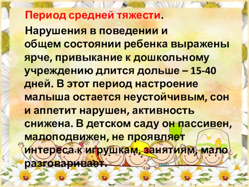 Слайд 5 Период средней тяжести.