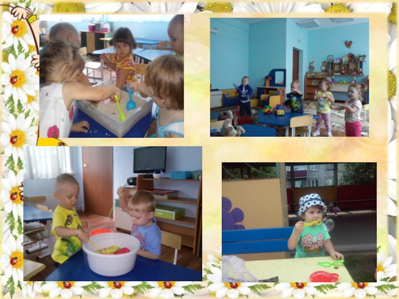 моменты: приход сказочного персонажа, включалась спокойна музыка , предлагались игры на снятия эмоционального напряжения ребенка. Это пальчиковые игры, игры с мыльными пузырями, игры с песком и водой.