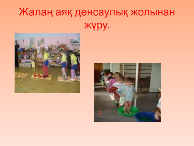 Слайд 19Жалаң аяқ денсаулық жолынан жүру.