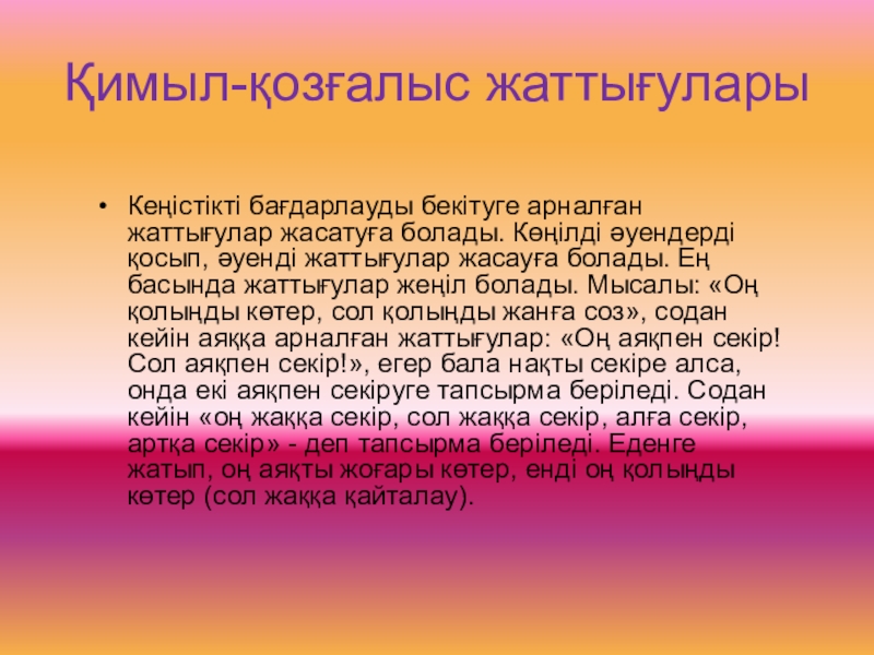Слайд 11Қимыл-қозғалыс жаттығулары