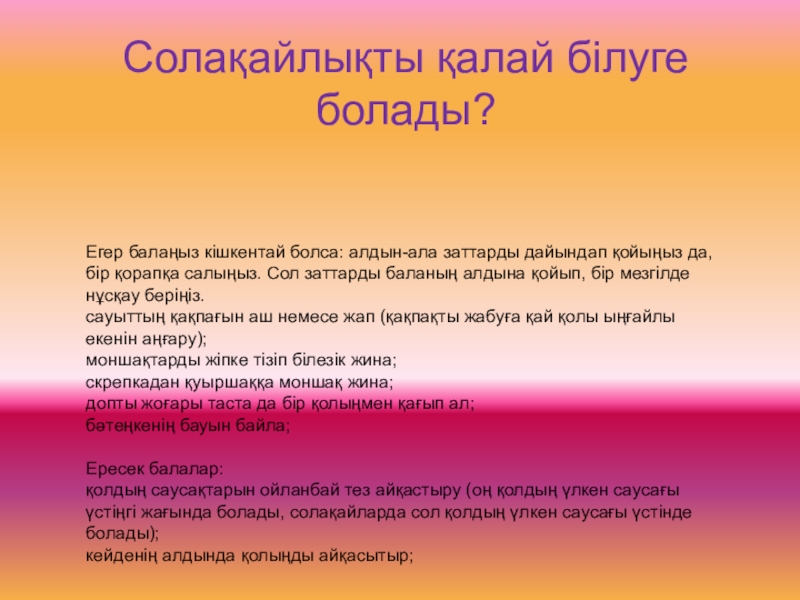 Слайд 7Солақайлықты қалай білуге болады?