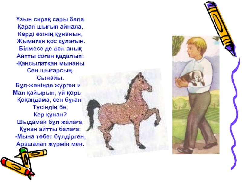 1. Өлеңнен қандай ғибрат алдыңдар?
