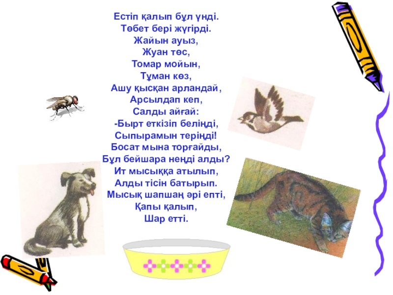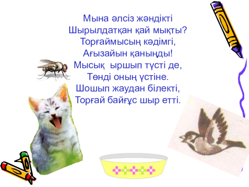 ғ)Шыбынды,торғайды,мысықты,итті,