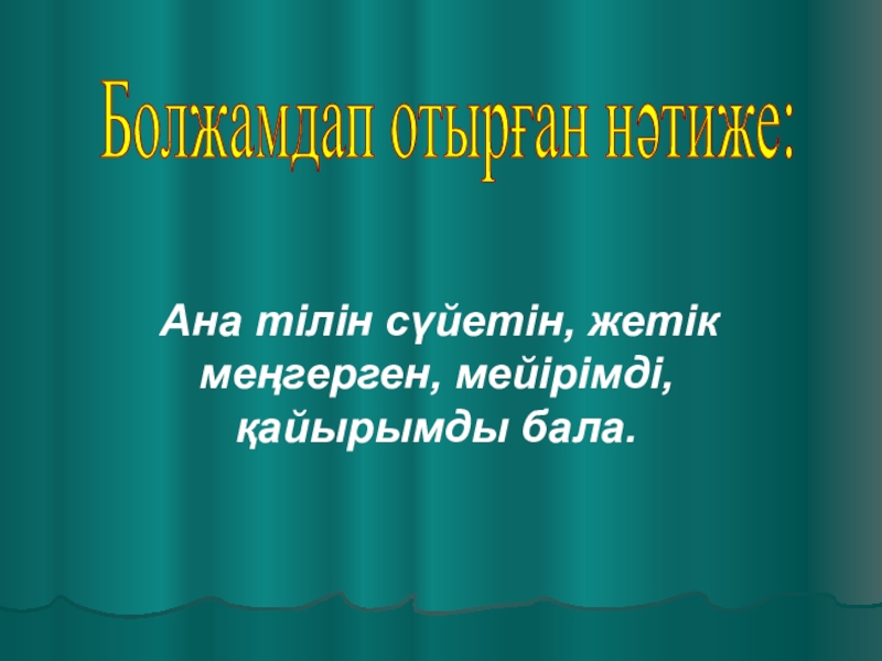 Слайд 4 Ана тілін сүйетін, жетік меңгерген, мейірімді, қайырымды бала.