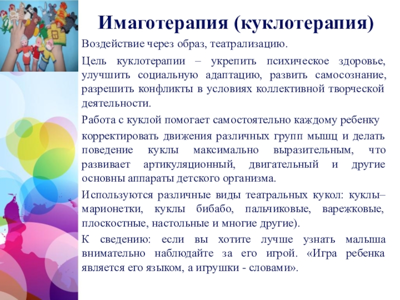 Цель куклотерапии – укрепить психическое здоровье, улучшить